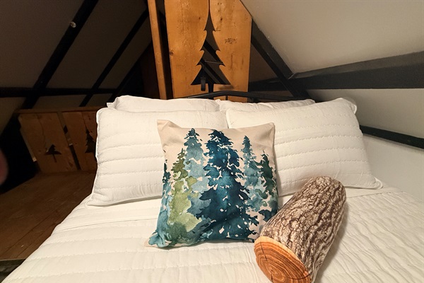 Tuck into your loft hideaway with two full-size Casper beds, cozy blankets, and A-frame charm—perfect for dreamy nights above it all.